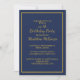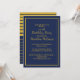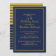 Invitación a la fiesta de cumpleaños con franjas de oro y azul marino.
