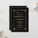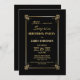 Una moderna invitación de cumpleaños sorpresa para negros y dorados.