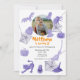 Invitación a la fiesta de cumpleaños púrpura y naranja con motivos ilustrados de Halloween. Puedes personalizar con la foto favorita de tu bebé y puedes modificar todo el texto que sale. En la espalda un poster con fantasmas divertidos volando. (Foto cortesía de Alvin Mahmudov de Unsplash).