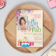 Añada una foto de la celebración de cumpleaños a esta colorida invitación de fiesta y genere algo de emoción por las próximas festividades con el texto fácil de actualizar. Globos en la parte superior, una tarta de cumpleaños y regalos en la parte inferior y letra negrita en el medio hacen una invitación divertida. Se ve bien impreso o en formato digital.