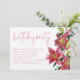 Plantilla de invitación para la fiesta de cumpleaños de adultos para su cumpleaños. flores de lirio de tigre de bonito, con vegetación y capullos, decoran el borde del papel blanco. La tarjeta horizontal tiene un guión grande y manuscrito en la parte superior para el título del fiesta. El resto del texto de la invitación se encuentra en un párrafo que se alinea a la izquierda. El texto es un tipo de letra impreso lúdico y toda la redacción es rosa lila oscuro. La parte posterior de las tarjetas tiene un diseño gráfico en color rosa y verde.