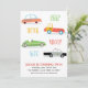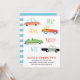 Invitación a la fiesta de cumpleaños de un niño con un coche de carreras, un coche de policía.