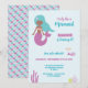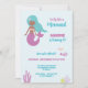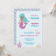 Una linda invitación para una fiesta de sirena negra en colores suaves con un diseño de escamas de sirena en la parte posterior. Perfecta para una fiesta de cumpleaños con tema de sirena o bajo el mar para una niña con piel negra o morena.