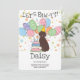 Haga especial su cumpleaños Aussiedoodle marrón con nuestro adorable diseño de temática canina con un gorra fiesta y globos coloridos. Personaliza esta divertida invitación de cumpleaños con el nombre y edad de tu perro para una celebración de cola!