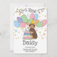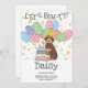 Haga especial su cumpleaños negro y marrón de Aussiedoodle con nuestro adorable diseño de temática canina con un gorra fiesta y globos de colores. Personaliza esta divertida invitación de cumpleaños con el nombre y edad de tu perro para una celebración de cola!