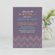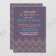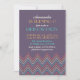 Carta de invitación a la fiesta de cumpleaños dulce y dulce con colorido patrón de chevron o zigzag. Fondo púrpura con una redacción amarilla, blanca y azul. Diseño divertido y de moda. Perfecto para chicas fiesta. Personalizar la redacción para otras ocasiones como ducha de bebé, ducha de novia, boda, dulce 16, graduación y más.