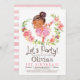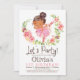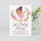 Chica de bailarina de ballet/bailarina rosa y marrón, primera invitación a la fiesta de cumpleaños. Fondo acuarela y rayado hacia atrás.