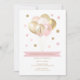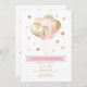Invitación a la fiesta de cumpleaños de chica con tinta y oro que está diseñada para un cuarto cumpleaños pero puede ser editada para cualquier edad. El diseño está decorado con globos purpurinas de color dorado y rosa brillante. El diseño se compone de confeti rosa y dorado alrededor de los globos. La invitación se puede personalizar con los detalles de tu pequeña.
