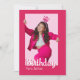 Invitación de cumpleaños de la caja de juguetes con tema de muñecas rosadas.