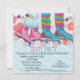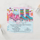 Invitación a la fiesta de cumpleaños de Roller Skating en colores alegres y divertidos y vivos, líneas y flores en el fondo y un aspecto muy alegre . con un estilo ilustrativo esquemático.