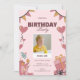 ¡Celebra el día especial de tu hijo con esta adorable invitación de cumpleaños con temática rosa! Con osos lindos, globos fiestas y espacio para una foto personal, esta invitación le agrega un toque dulce y festivo a su celebración.