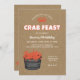 Invitación a la fiesta de cumpleaños del cangrejo con fondo de "papel cangrejo" y una olla de cangrejos al vapor. Vea nuestra colección de fiestas de cangrejo para ver si hay elementos coincidentes para completar su fiesta.