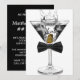 Invitación de cumpleaños de hombre de martini. Esta elegante invitación de cumpleaños de pajarita negra y martini para hombre funciona muy bien para una fiesta de cumpleaños de cualquier número de hombre, jubilación, evento corporativo de corbata negra, fiesta de martini o despedida de soltero, etc. Agrega tus detalles en la parte delantera y/o trasera de esta elegante invitación de cumpleaños de pajarita negra y martini.