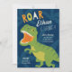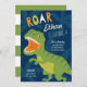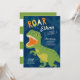 Colorida invitación de fiesta de cumpleaños con temática de dinosaurio que se puede personalizar con tu texto.