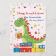 Invite a sus amigos pequeños con este alegre dino repleto de color y diversión. Perfecto para una fiesta de cumpleaños. (Obra de arte generada por IA)