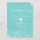 Verde azuladas invitaciones para fiestas de cumpleaños con flores en un diseño de línea moderna. nombres, fechas e información de personalizares.