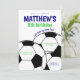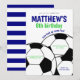 ¡Celebra a tu jugador de fútbol estrella con esta Invitación de Cumpleaños para una Fiesta de Fútbol para Niños! Con un tema de fútbol simple. La invitación de descarga instantánea dice "Únete a nosotros para celebrar" en la parte superior y el nombre y la edad del jugador de fútbol en letras azules y verdes en negrita. Debajo de eso hay una frase divertida que dice "¡Vamos a patear y divertirnos!" arqueada sobre una gran pelota de fútbol en blanco y negro. Los detalles de la fiesta están colocados de manera creativa dentro de las pelotas de fútbol que llenan el fondo inferior. El fondo blanco limpio combinado con gráficos en negrita le da un aspecto moderno y enérgico perfecto para una fiesta de cumpleaños de fútbol para niños y fácil de personalizar con esta plantilla editable.