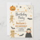 ¡Trae la diversión a la vida con esta invitación de cumpleaños de Halloween con tema de skeleton! Con sus bonitos esqueletos, calabazas y detalles espeluznantes, es perfecto para una fiesta de cumpleaños o un festín de disfraces de los niños de octubre. Personalice fácilmente el nombre, la edad, la fecha y los detalles del fiesta de su hijo directamente en Zazzle. ¡Un diseño festivo y lúdico que garantiza una celebración memorable de cumpleaños de Halloween!
