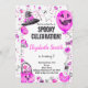 ¡Organiza una adorable fiesta de cumpleaños de Halloween con tema rosa con esta encantadora invitación! Con bonitos elementos de Halloween perfectos para chicas. Personalice los detalles con facilidad.