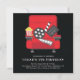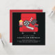 Invitación de fiesta de cumpleaños de películas única con asientos rojos de teatro sobre fondo negro con respaldo rojo coordinado para un toque extra especial.