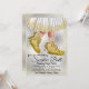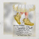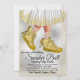 Invitación a la pelota de zapatillas para niñas con zapatillas doradas glamurosas y vestido en un bonito fondo plateado y dorado. Esta invitación de pelota de zapatillas se personaliza fácilmente para su evento simplemente agregando sus datos.