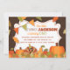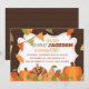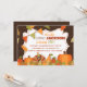 ¡Acepten los cumpleaños de noviembre con esta adorable invitación al cumpleaños de la pequeña Turquía! Presenta unas bonitas hojas de color otoñal, calabazas y pavo sobre un fondo de textura de madera.