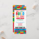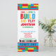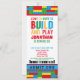 Celebra el cumpleaños de tu pequeña con esta invitación de cumpleaños de ladrillo de la construcción. El diseño presenta un diseño de ladrillo de construcción colorido con una diversión que llega para construir y reproducir texto.