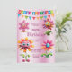 Hermosa invitación de fiesta de cumpleaños de flores rosadas felices