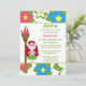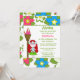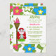 Esta invitación a la fiesta de cumpleaños de los chicas 5x7 tiene un diseño tropical luau hula chica. El fondo está lleno de flores rosas, azules y blancas. Hay un chica de pelo rojo junto a una antorcha de tiki. Puede personalizar fácilmente la información de su fiesta en el lado derecho.