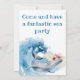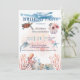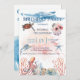 Hermosas acuarelas con corales y flores. En esa parte de atrás, tienes texto y ballena en una ola. Personalizar tu texto, fecha y nombre.