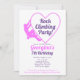 Esta invitación a la fiesta de cumpleaños de escalada en roca es una manera brillante y divertida de invitar a los huéspedes. En un bonito rosa y violeta con un escalador en el corazón. Un diseño moderno que funcionaría a la perfección para un evento de escalada de pared cubierta infantil. Puede ser completamente personalizado, incluyendo la edad del niño.