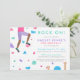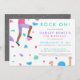 Invitación a la fiesta de cumpleaños de escalada de rock de los chicas - ¡Rock on! La pared de escalada con agujeros coloridos está en una textura acuática divertida.