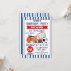 La invitación para la fiesta deportiva de este chico incluye varios equipos deportivos como béisbol, bate de béisbol, raqueta de tenis, fútbol, fútbol y más sobre un fondo blanco con una frontera a rayas azules y blancas. También he incluido una bandera roja brillante que sirve como fondo para el nombre de tu pequeño. Quería crear una nueva colección de invitaciones de cumpleaños deportivos para la tienda para dar al visitante más variedad de donde elegir. Esta invitación deportiva para cumpleaños es apta para varias edades y está lista para ser personalizada. Si necesita una combinación de colores diferente, póngase en contacto conmigo para una nueva plantilla sin cargo adicional.