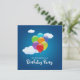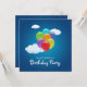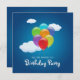 Plantilla de invitación para fiestas de cumpleaños de personalizable para niños con un bonito ilustracion de estilo personalizado con un grupo de globos coloridos volando sobre nubes esponjosas blancas en el cielo azul. Personalízalo con su propio texto o personalizar si desea ajustar el diseño o elegir un tamaño de invitación diferente. También están disponibles sobres cuadrados coincidentes: