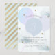 Esta bonita tarjeta de invitación para la fiesta de cumpleaños del chica incluye globos en tonos azul bebé con nubes y falsas estrellas purpurinas de oro sobre fondo azul claro. En el reverso se ven franjas falsas de diagnóstico de oro sobre fondo azul claro. Personalízalo para tus necesidades. Puedes encontrar productos coincidentes en mi tienda.