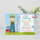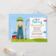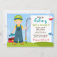 Invitación a la fiesta de cumpleaños de los niños pequeños que pescan. Cuenta con un chico rubio con un palo de pesca, una caja de abordaje y un pez. Algunos elementos JDDigiDesign