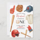 Haga un recorrido en casa con esta invitación a la fiesta de cumpleaños de los niños de béisbol. Diseñada con elementos clásicos de béisbol como murciélagos, bolas y detalles deportivos, esta alegre invitación es perfecta para celebrar el primer cumpleaños de tu pequeño slugger. La paleta de colores rojo, blanco y azul crea un divertido tema de béisbol americano. Esta invitación al primer cumpleaños del béisbol es ideal para niños y chicas, ya sea que planee un fiesta en el patio trasero, bash con temas deportivos o celebración inspirada en el estadio. Una manera memorable de invitar a amigos y familiares al gran día de su hijo.