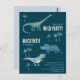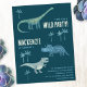 ¡Es hora de una fiesta de cumpleaños salvaje! Un divertido grupo de adorables dinosaurios sobre un oscuro fondo verde verde azulado, listos para el personalizar con el nombre, edad y detalles fiestas de su hijo. Genial para cualquier niño de edad o chica. Arte original de Nic Squirrell.