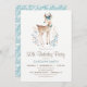 Invitación a la fiesta de cumpleaños de Woodland Deer. El Invite presenta elementos de chica de bosque como la flor marrón marrón con flores azules.
