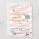 Invitación a la fiesta de cumpleaños de maquillaje chica rosa con confeti dorado