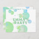 Cute Green and Blue Bubbles Kids Birthday Party Invitation // Postcard lindo para la celebración de la fiesta de cumpleaños de un niño. Personalice esta tarjeta de invitación de cumpleaños con el nombre del niño y todos los datos en el reverso de la tarjeta postal. Esta invitación tiene burbujas de color verde y azul sobre un fondo blanco. Excelente como una invitación fiesta a un chica o una fiesta de cumpleaños de un niño.