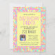 Invitación a la fiesta de cumpleaños personalizado con fondo de confeti amarillo pastel y tema de color. Totalmente editable para personalizar para la fiesta de cumpleaños o cualquier ocasión. Sencillamente reemplace la información de su foto, fiesta y RSVP para sus huéspedes. Disponible para impresión y descarga instantánea.