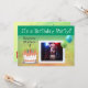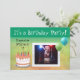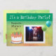 ¡Genial para cualquier edad o género! Invitación divertida colorida con pasteles y globos. El verde y el amarillo son grandes para chicas o niños. Agrega una foto del invitado de honor. Incluya la información de festividad de su personalizado en la parte posterior.