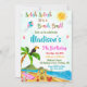 Invitación de cumpleaños en la playa Invitación a la fiesta de la piscina para niños o chicas de piscina tropical Splish Splash! ¡Es un chapuzón de playa! Invitación de verano para niños o chicas de cumpleaños con sol de Yelow, playa, nalga de arena, Toucan en la palmera y un océano azul. Simplemente edite esta plantilla fácil de usar en el menú Personalización.