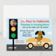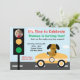 Invite a la familia y amigos a la fiesta de cumpleaños de su hijo con estas adorables invitaciones personalizadas para participar en una fiesta de carreras. Cuenta con un cachorro conduciendo un auto amarillo lindo con la edad de su hijo a un lado. Personalizar con sus detalles de foto y fiesta! Algunos elementos © Goodness and Fun