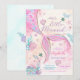 Haz un splash con esta encantadora invitación de cumpleaños de sirena, con un caprichoso fondo de acuarela en suaves tonos rosados y púrpuras con conchas marinas, coral y burbujas. Una vibrante cola de sirena toma el centro del escenario, creando un mágico tema submarino perfecto para la celebración de una niña. Este diseño personalizable es ideal para fiestas inspiradas en el océano, agregando encanto y emoción al día especial de tu hijo.