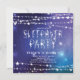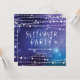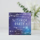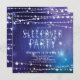 Fiesta de cumpleaños de Sleepover con una estrella de brillo en un fondo azul de medianoche adornado con guirnaldas de estrellas blancas. Invitamos a nuestros huéspedes a ver la parte posterior de la recepción, para darle un toque especial.