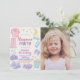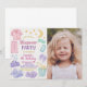 Invitar a los amigos a una noche de gafas, juegos y diversión con esta adorable invitación editable de cumpleaños para dormir! Diseñada con un encantador estilo acuático, esta tarjeta vertical de 5 x 7 pulgadas muestra pijamas pastel, aperitivos, estrellas e íntimos iconos acogedores para dormir, perfecta para el fiesta de un chica. El texto de personalizable completo le permite personalizar todos los detalles del fiesta. ¡Una forma divertida, elegante y profesional de celebrar una escapada de cumpleaños especial!