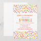 Esta invitación a la fiesta de cumpleaños Sprinkle incluye una pintoresca espolvorea con los detalles del fiesta escritos en un estilo moderno. También se puede utilizar para varias otras ocasiones. Puede mover, eliminar o cambiar la mayoría de los elementos de diseño/fuentes/fondo según su elección/preferencias. No olvide elegir el tipo de papel cuando solicite sus invitaciones.
