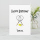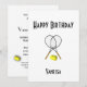 Invitación divertida para el tenista en blanco. Las palabras feliz cumpleaños pueden ser cambiadas. Agregue los nombres, fecha y detalles. Una hermosa invitación que se puede personalizar fácilmente para muchas ocasiones especiales y celebraciones de hitos felices — el texto puede ser usado para cualquier evento incluyendo fiesta de aniversario, fiesta de cumpleaños, boda, guardar la fecha, asunto exclusivo o evento.